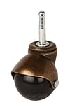 2" Antique Brass Finish Ball Caster with Wood Stem and metal wood socket. For chairs and light furniture with a wooden base or wooden legs. Wheel is molded pvc. Not recommended for loads over 240 lbs.