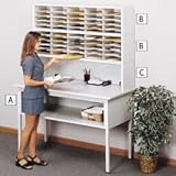 Efficient, flexible SAFCO E-Z Sort Mail Room Furniture gives you all the room you need to complete mail room tasks. Modular units can be used in any combination. Heavy-gauge steel stands up to the most demanding applications.NOTE: Build a mailroom sorting table to fit your needs by using the components listed below.Sorting Table. 500-lb. capacity. Extra-thick 11/2" steel legs support the 11/2" thick wood laminate top. Top is surrounded by tough T-mold edges. Includes 150-lb. capacity shelf with 14" clearance.Sorter Module: Twenty 11"W mail trays can be inserted in any configuration to create up to 25 mail slots. Trays have finger cut-outs and label holders.Riser: Offers extra storage or to support other modules.